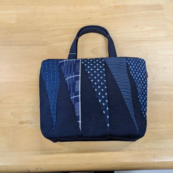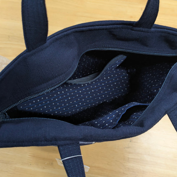 儀右エ門トートバッグ。上質で実用的な日本伝統的織物、久留米絣の綿100%風合いがあります。お買い物のお供に、お出かけに!日常に愛着ある一点になります。