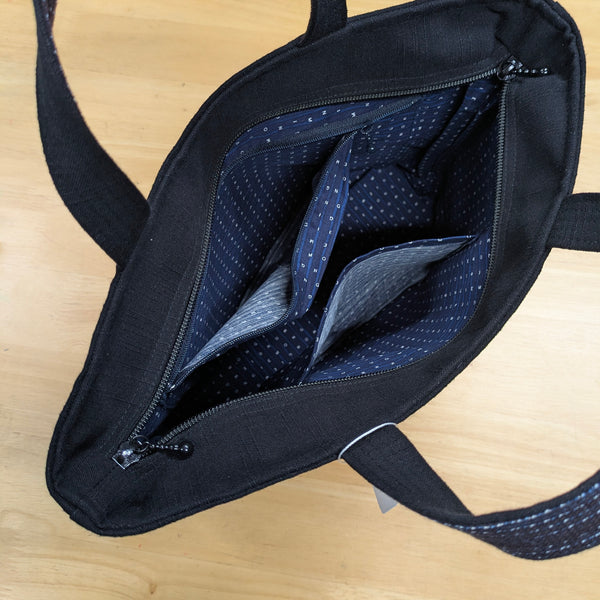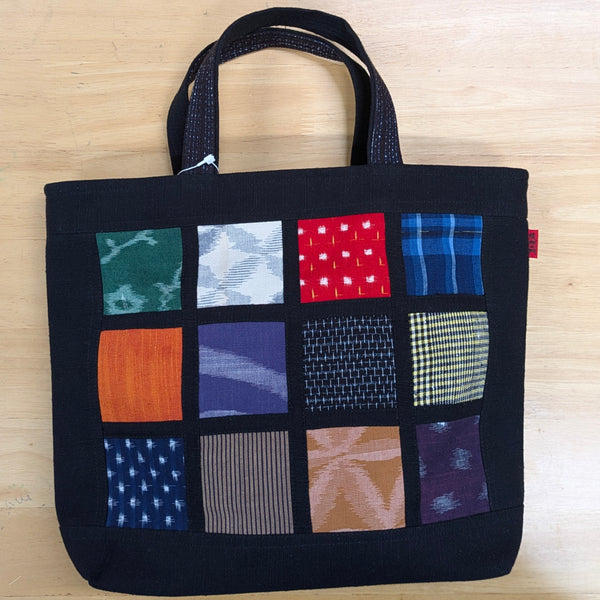 儀右エ門トートバッグ。上質で実用的な日本伝統的織物、久留米絣の綿100%風合いがあります。