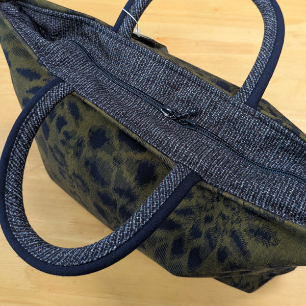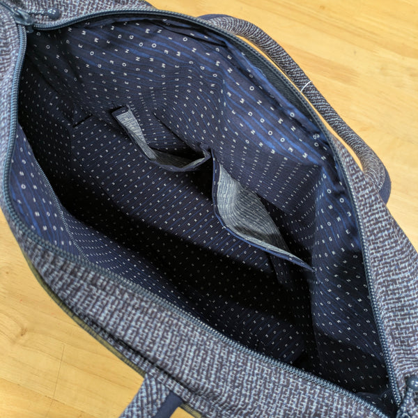 儀右エ門の大きいトートバッグです。習い事にも一泊旅にも活躍します。中には大きめのファスナーポケットと、携帯メガネや鍵などさっと入れられる便利なポケットが2つあります。