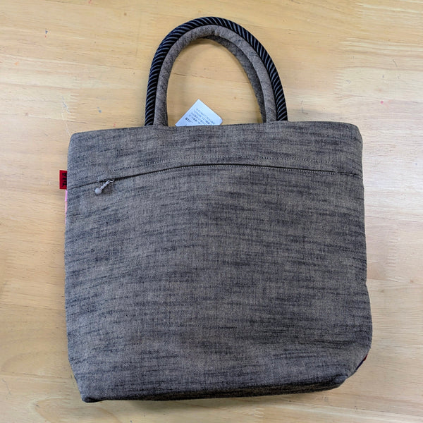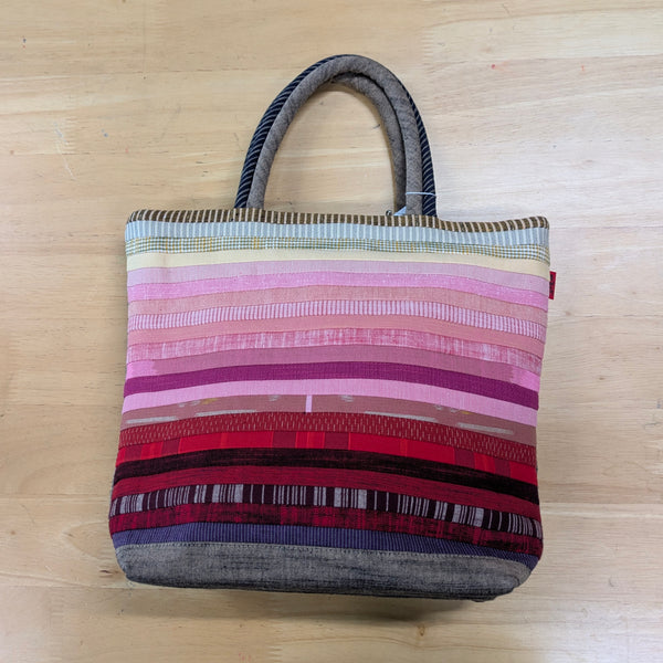 ベージュ、ピンク赤暖色グラデーションのステキな儀右エ門のトートバッグです。日ごろのお供にたっぷり入るちょうどよいサイズです。