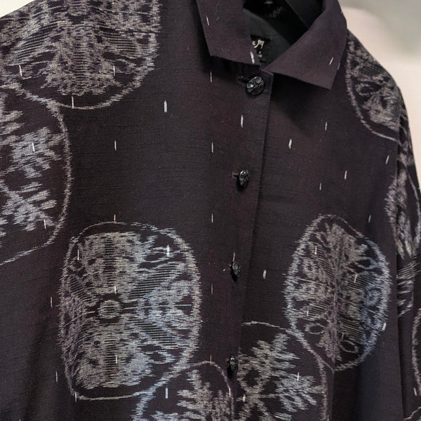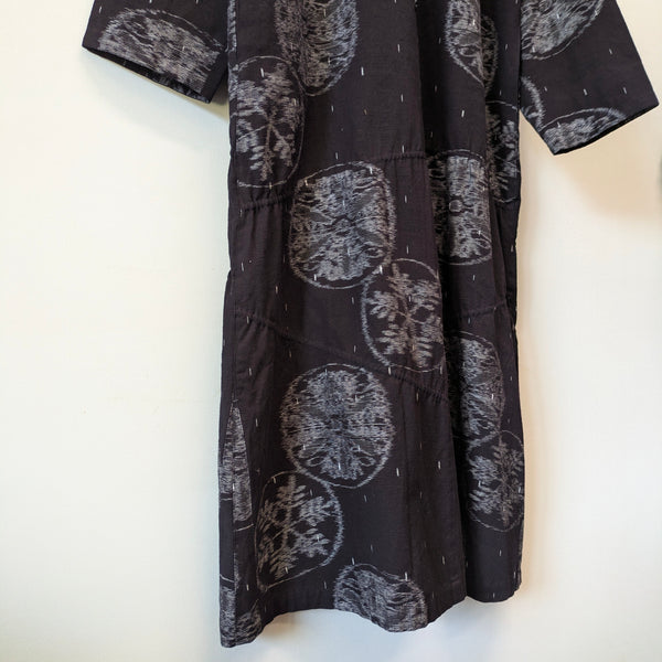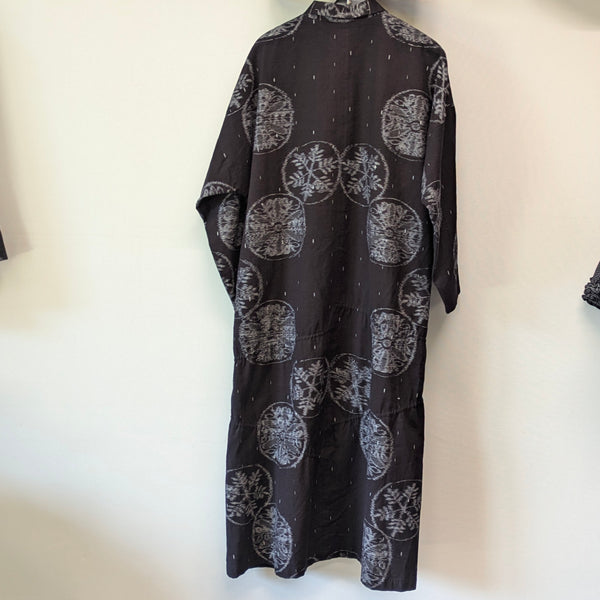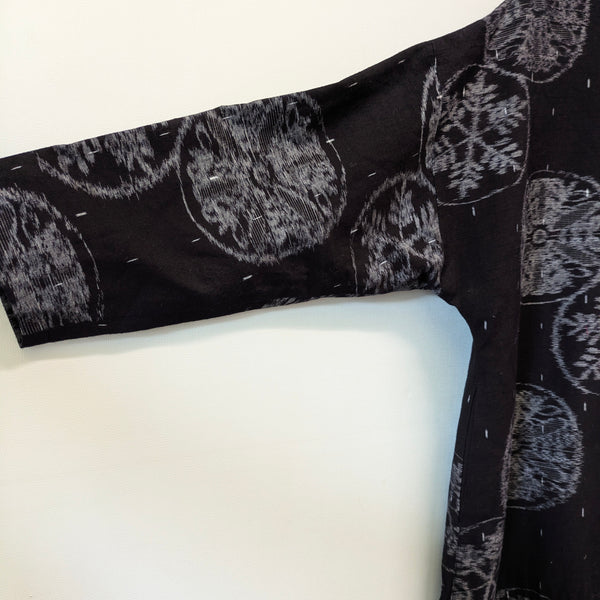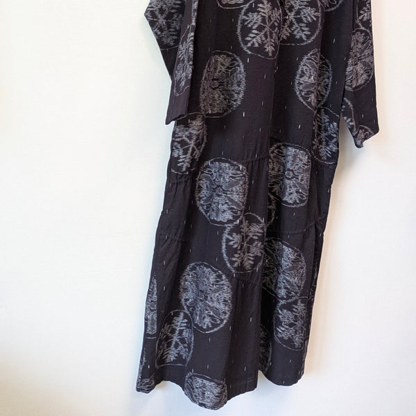 久留米絣 儀右エ門 ゆったり ロングワンピース 鞠 黒/白